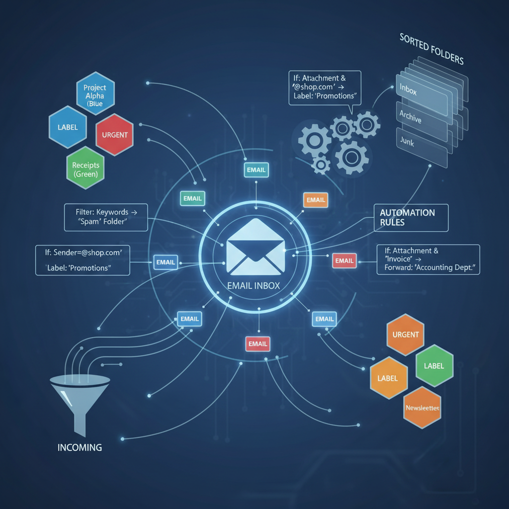 Zdjęcie przedstawiające praktyczną automatyzację skrzynki pocztowej przy użyciu etykiet i filtrów.