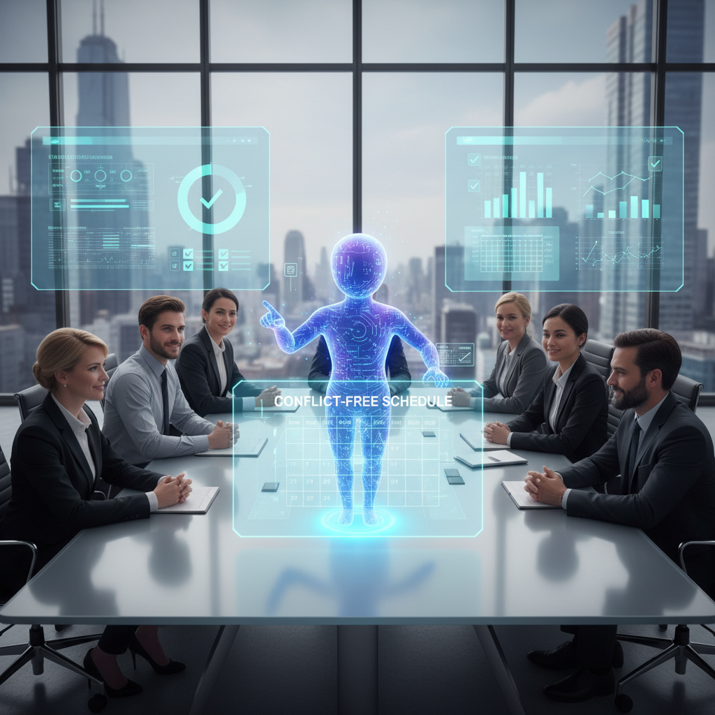 Sztuczna inteligencja analizująca kalendarze pracowników w czasie rzeczywistym i proponująca optymalne terminy spotkań. Według analizy Projekt Gamma (2024), wdrożenie AI obniżyło liczbę konfliktów kalendarzowych o 20% w firmach zatrudniających powyżej 50 osób.